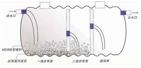 生活污水中懸浮性有機(jī)物的處理設(shè)施, 屬于初級的過渡性生活處理構(gòu)筑物。生活污水中含有大量糞便、紙屑、病原蟲...懸浮物固體濃度為 100~350mg/L,有機(jī)物濃度CODCr 在100~400mg/L之間,其中懸浮性的有機(jī)物濃度BOD5為50~200mg/L。污水進(jìn)入化糞池經(jīng)過12~24h的沉淀,可去除50%~60%的懸浮物。沉淀下來的污泥經(jīng)過3個月以上的厭氧發(fā)酵分解,使污泥中的有機(jī)物分解成穩(wěn)定的無機(jī)物,易腐敗的生污泥轉(zhuǎn)化為穩(wěn)定的熟污泥,改變了污泥的結(jié)構(gòu),降低了污泥的含水率。定期將污泥清掏外運,填埋或用作肥料。