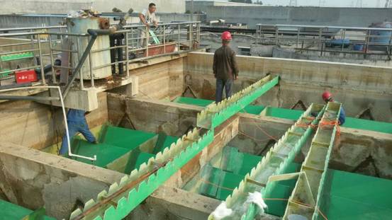 此時停止曝氣,微生物利用水中剩余的DO進行氧化分解。反應(yīng)池逐漸由好氧狀態(tài)向缺氧狀態(tài)轉(zhuǎn)化,開始進行反硝化反應(yīng);钚晕勰嘀饾u沉到池底,上層水變清。
